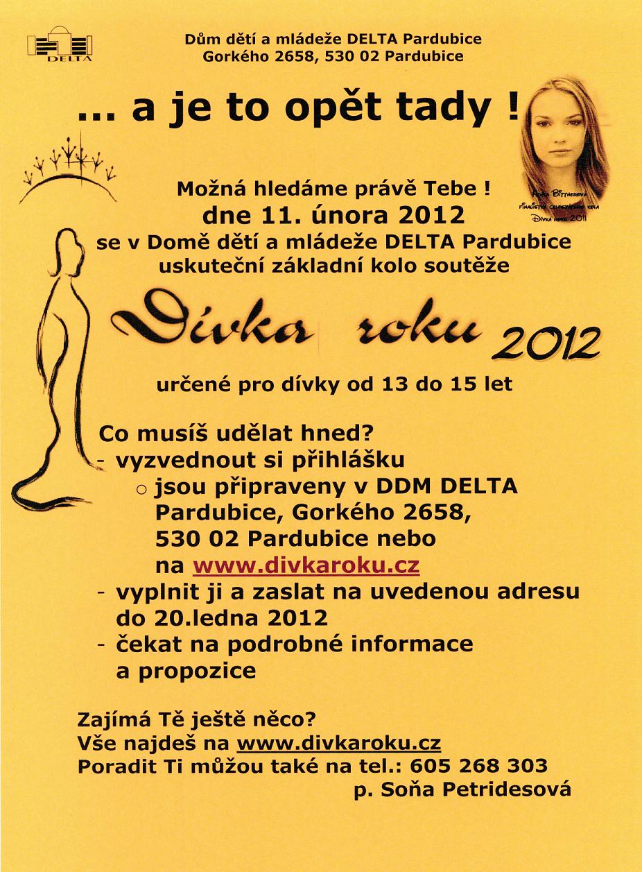 - jsou připraveny v DDM DELTA Pardubice, Gorkého 2658, 530 02 Pardubice nebo na www.divkaroku.cz